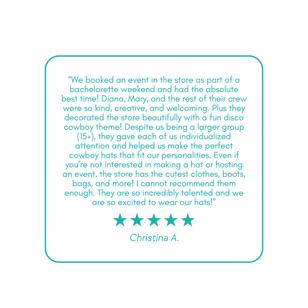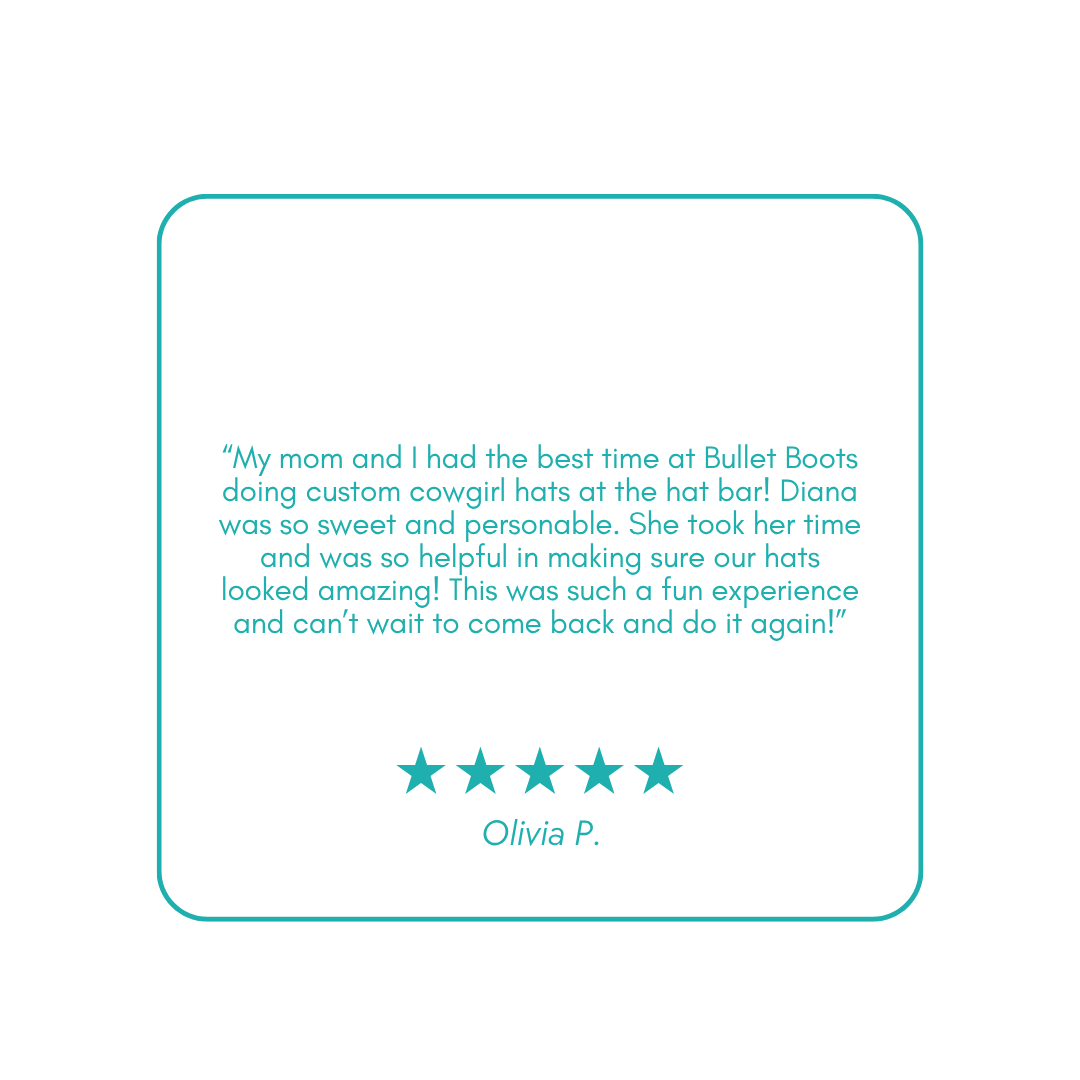 Bullet Boots Hat Bar & Leather Branding Service offers a luxury, interactive hat bar experience designed for unforgettable events—available in-store or at your location. Perfect for live activations, bachelorette parties, fundraisers, birthdays, corporate events, weddings, and more.
