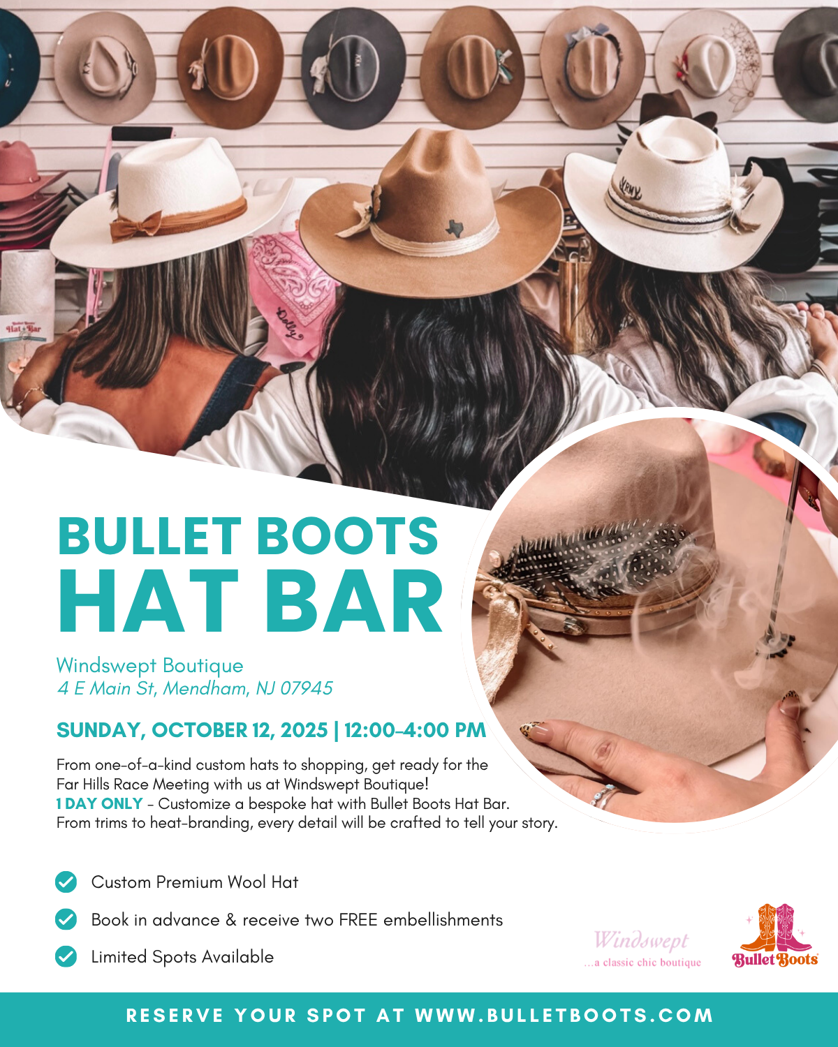 Windswept Boutique X Bullet Boots Hat Bar Event